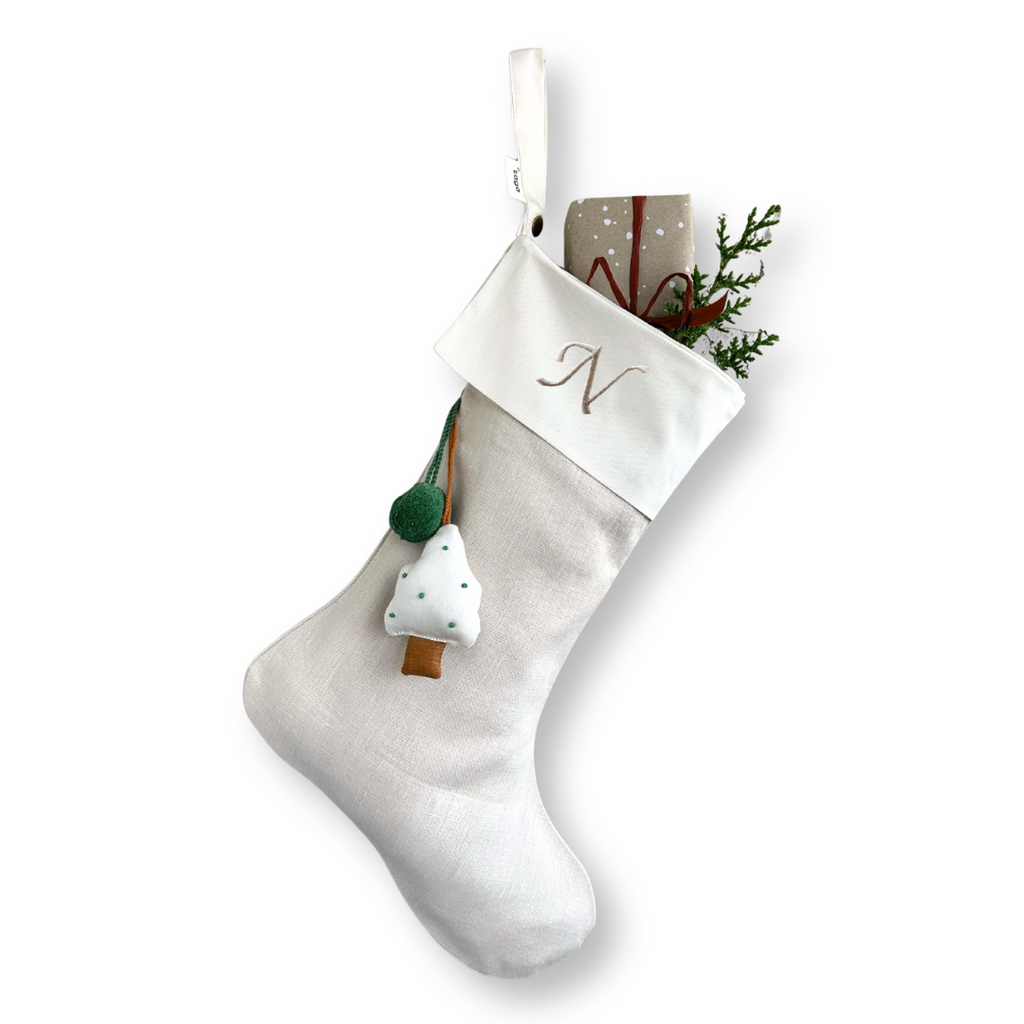 Als besonderes Detail sind die Weihnachtsstrümpfe mit einem gestickten Anfangsbuchstaben verziert.
