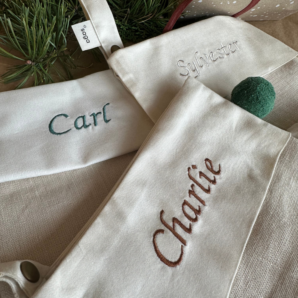 Als besonderes Highlight kann der Weihnachtsstrumpf mit einem gestickten Namen personalisiert werden – erhältlich in drei verschiedenen Farben. Das macht ihn nicht nur einzigartig, sondern auch zu etwas ganz Persönlichem für jedes Familienmitglied.