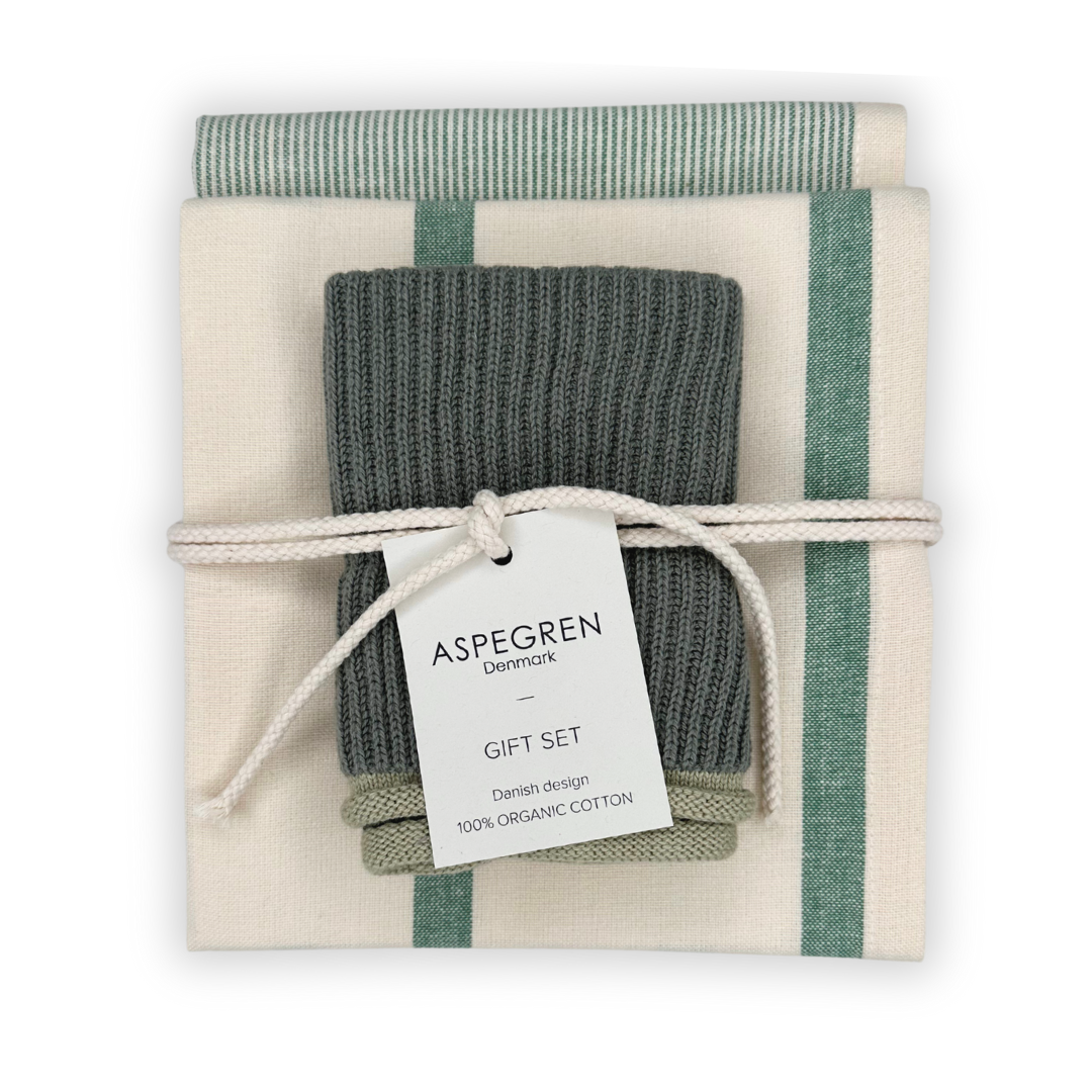 Ein nachhaltiges Geschenkset mit zwei Geschirrtüchern und ein Spültuch. Ideal für verschiedene Anlässe ist dieses Set nicht nur umweltfreundlich, sondern auch sorgfältig hergestellt und mit Blick auf Nachhaltigkeit gestaltet.
