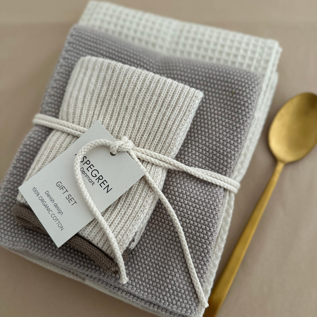 Ein wunderschönes Geschenkset mit einem Geschirrtuch, einem Küchentuch und einem Geschirrtüch. Dieses Set eignet sich ideal für verschiedene Anlässe und ist nicht nur umweltfreundlich, sondern auch sorgfältig hergestellt und im Hinblick auf Nachhaltigkeit konzipiert